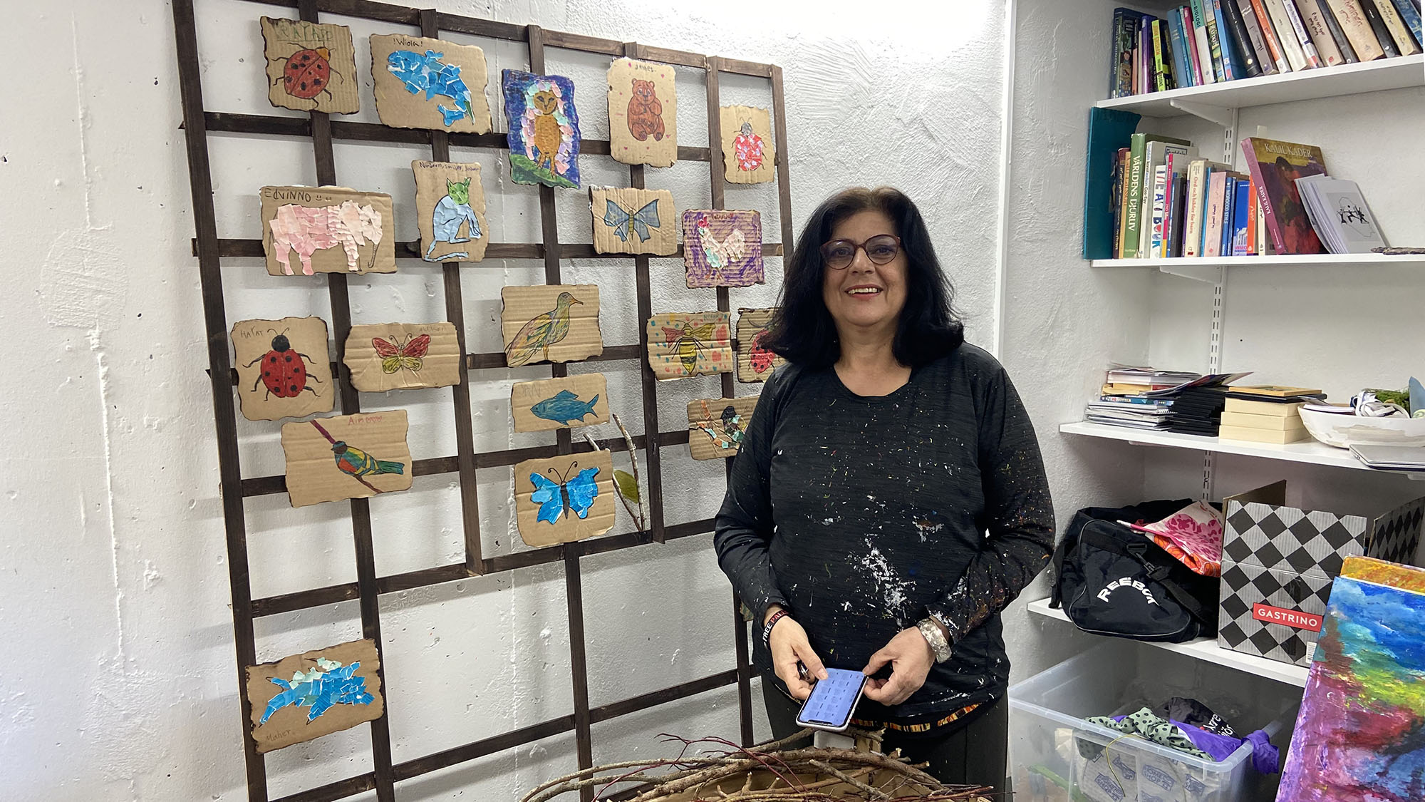 Tillsammans med Sawsan finns vår mötesplatskoordinator Hanin, trygghetsvärdar och hus- och miljövärdar på plats hela dagen för att inspirera, hjälpa till och skapa en välkomnande stämning. Caféet är öppet och i samband med vernissagen bjuds det på ett litet snack.