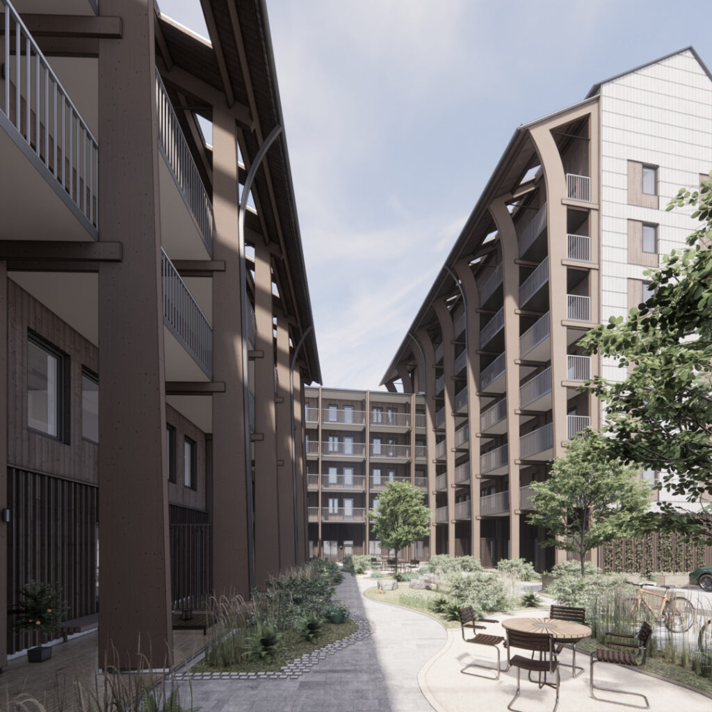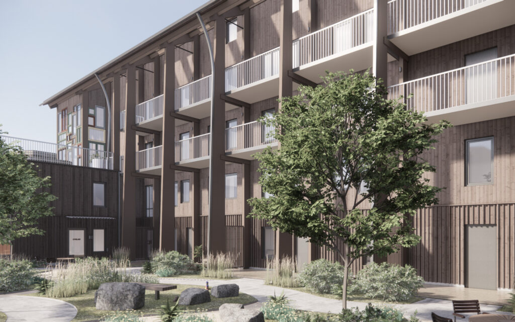 Uthyrningen av lägenheterna i kvarter Återbruket startar mars 2026.